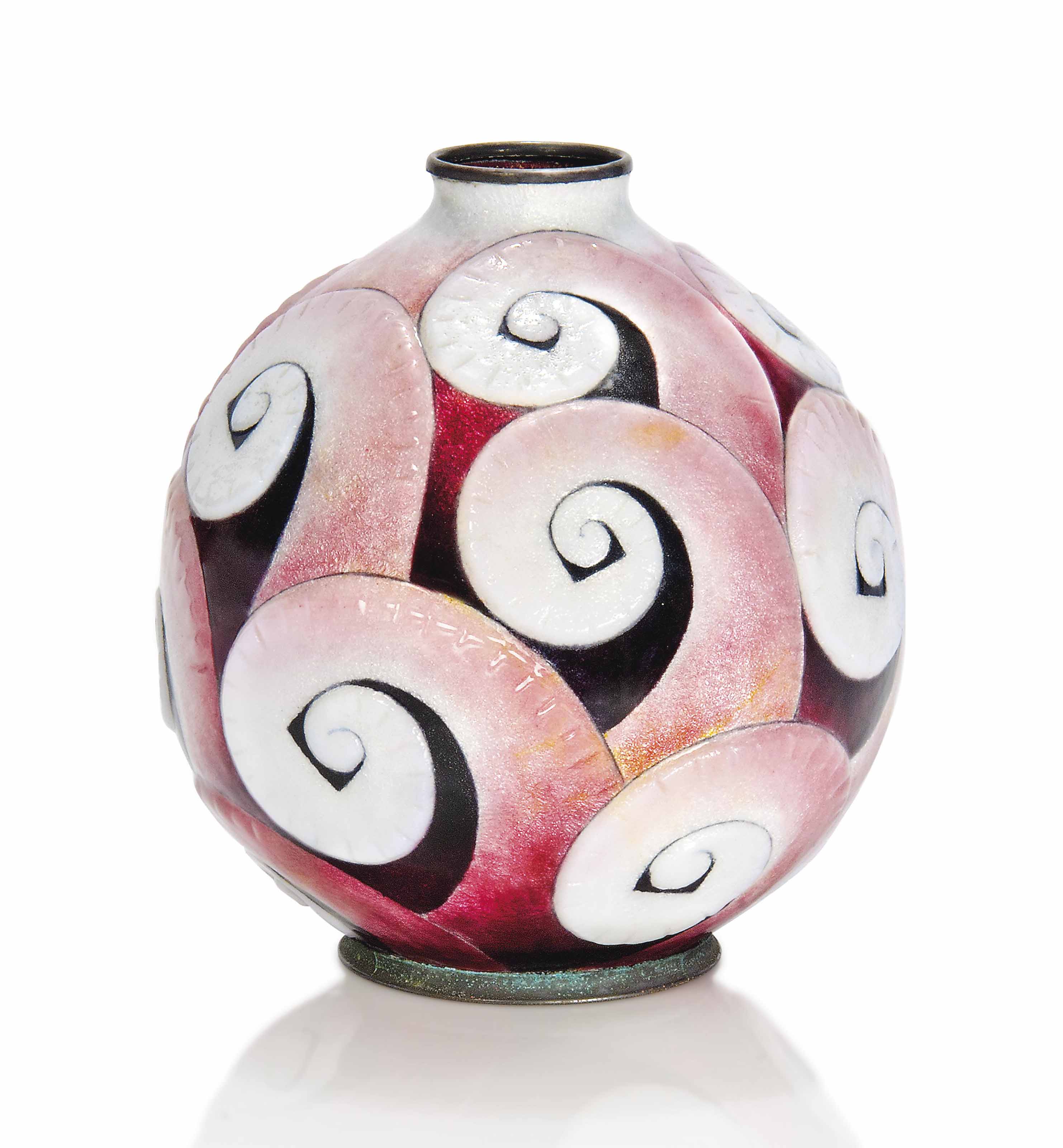 AN ART DECO COPPER AND ENAMEL VASE BY CAMILLE FAURE